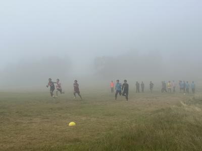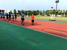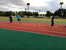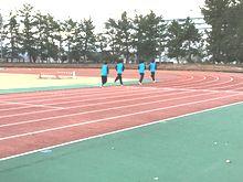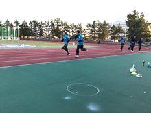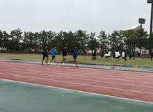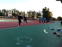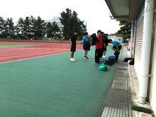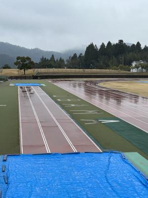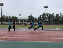 今日の天候は霧雨です。末広陸上競技場で技術練習をしました。地面が濡れているので気を付けなければいけません。