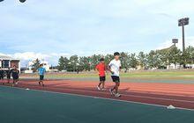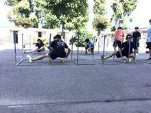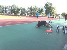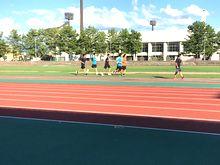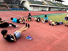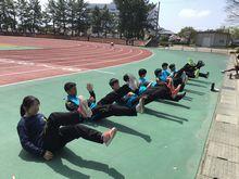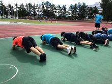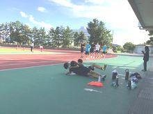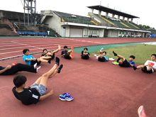 その後、朝からの雨がおさまったので末広陸上競技場で練習をしました。最後の筋トレがとてもキツかったようです。