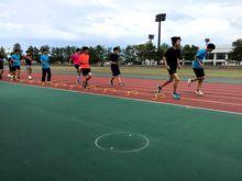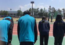 火曜日より2年生が修学旅行に行っています。1年生だけで部活動をします。今日は珍しく放課後も天候が良かったので末広陸上競技場で練習をします。すべて1年生で準備をして考えて行動しました。
