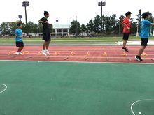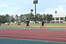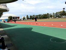 今日はかなり暑い日でした。北信越新人大会が西部緑地公園で開催されています。今日の陸上競技場は高校生の利用が少なかったです。全員でアップをした後に、各自の技術練習をしました。