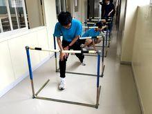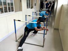 今日はあいにくの雨です。学校でのトレーニングとなりました。足の動きを確認しながらステップの練習をしたり、トレーニングコーナーで筋トレをしました。
