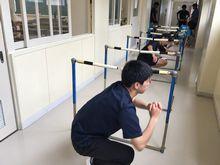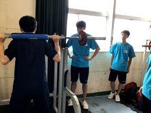 連日熱中症警戒アラートが発令されています。体調に気を付けて部活動にいそしんでいます。今日は学校でのトレーニングになります。校舎の影のところでアップをしました。グランドからの風が吹いていてとても気持ちよく活動できました。1時間ほどしてから第二体育館のトレーニング場へ移動します。とても暑かったです。