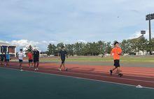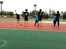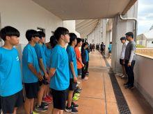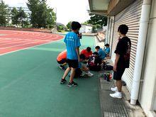 本日も暑い一日となりました。熱中症対策をしっかりとして練習をします。中長距離は末広陸上競技場の周辺をランニングしています。投擲練習は他校の生徒と合流して練習をしました。