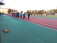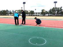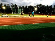 17時半には日が暮れて17時過ぎには競技場に照明が灯ります。今週末11月2日の駅伝大会に向けての練習も始めています。投擲の練習もしています。