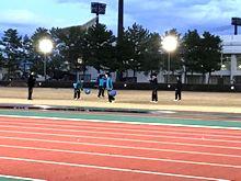 朝は冷たい雨がたたきつけていましたが、しだいに天気が良くなったので今日は末広陸上競技場で練習をしました。17時には競技場の照明が点きます。今日は放送部員が部活動の様子を撮影していました。次回は走っている様子を撮影してくれるそうです。