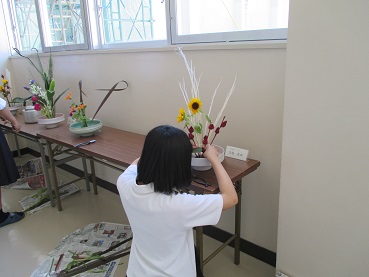 華道部のみなさんが素敵なお花を職員室前廊下に生けていました。