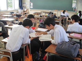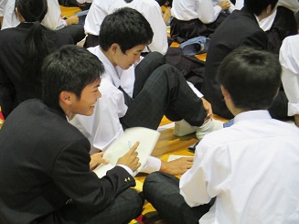 1,2年生各クラスで行い、様々なテーマで肯定側と否定側の班に