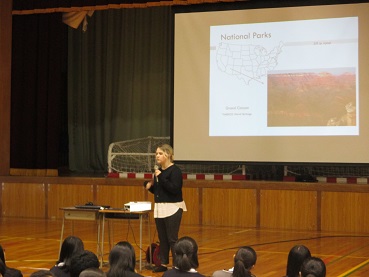 校長先生の挨拶の後、学校の説明や紹介がありました。