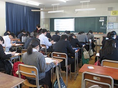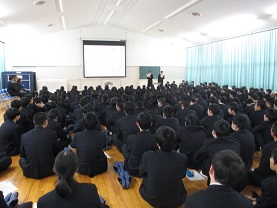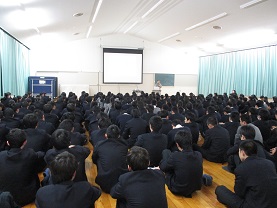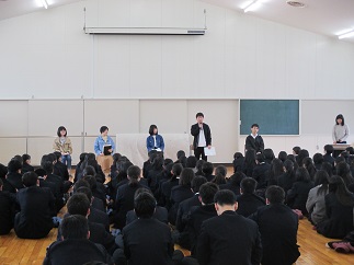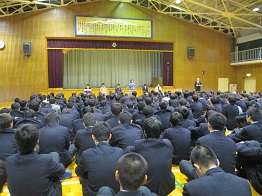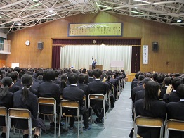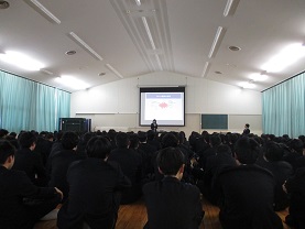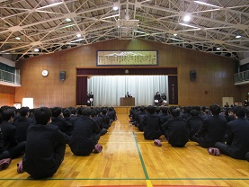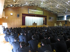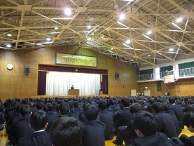25日(月)の国公立大学前期試験を目前にして、3年生の学年集会がありました。