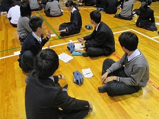 1,2年生各クラスで行い、様々なテーマで肯定側と否定側の班に