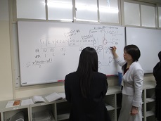 班でお互い準備した内容をもとに討論する様子を見て、