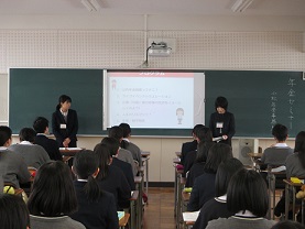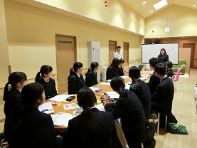 2年生文系アドバンストクラスの生徒45名が金沢星稜大学主催の「異文化交流講座」に参加しました。グループワークでは各班に留学生が入り「留学生の出身地におけるクリスマス&新年の過ごし方」についてのポスターを作成し、プレゼンテーションを行いました。