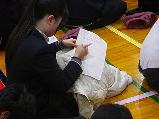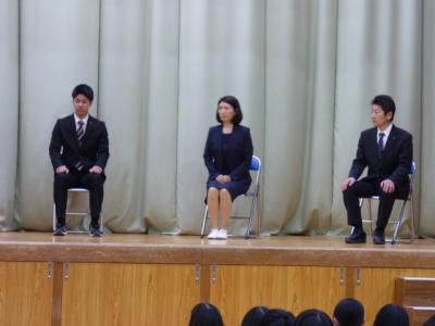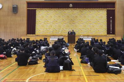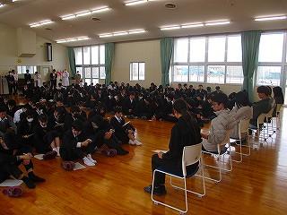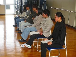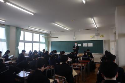 卒業生の話を一部抜粋すると、「部活動を引退するまでは、部活動と勉強の両立で悩んでいたとのことで、しかし、すき間時間を利用したり、朝少しだけ早く起きて勉強したり、どうにかして勉強時間を確保することに努めたと言っていました。」「そして毎日続けること、基礎を怠らないこと」など多くのことを実体験をふまえて教えていただきました。
