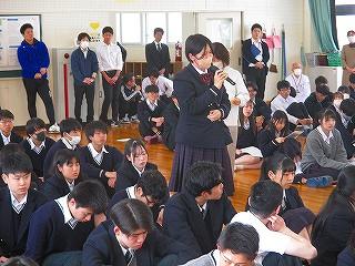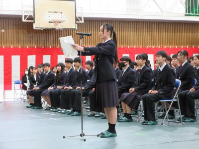 卒業生を代表して、漆原大志さんが学校生活や部活動での思い出やこれからの学校の中心となる在校生に向けた答辞を述べました。