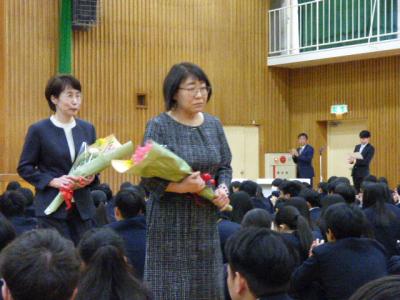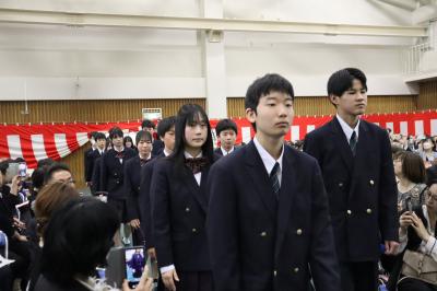 吹奏楽部が演奏する『3月9日』の曲が流れるなか、退場しました。各クラス、担任に向けた熱い思いも述べました。