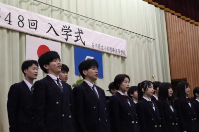 満開の桜の中、229名の新入生が、小松明峰生としての第一歩を踏み出しました。