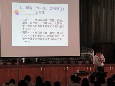 本日7限目、1年生の文系・理系のコース説明会がありました。