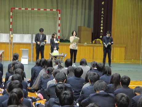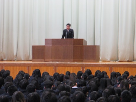 次に終業式で、校長先生は3年生に対し、来年1月に受験する