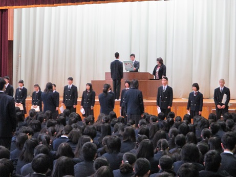 本日は2学期の最後の日で、終業式と表彰伝達式が行われました。