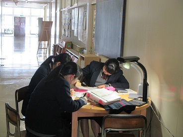 学校内を見渡すと、職員室前の学習コーナーには多くの