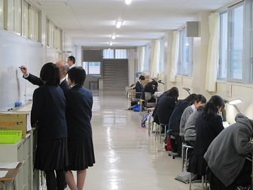 学校に来ている3年生を集めて、試験直前の最後の注意と