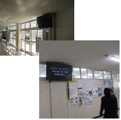 電子掲示板は1階生徒玄関前と2階職員室前に設置されました。