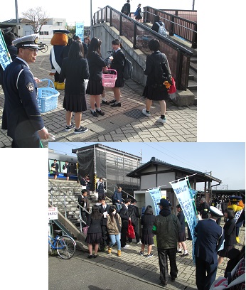 4月16日(月)7:40から約30分間、JR明峰駅で