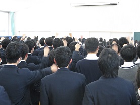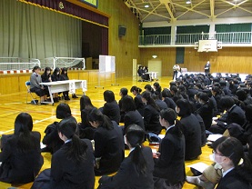 今週末に3年生が受験する大学入試センター試験に向けて、激励会が行われました。