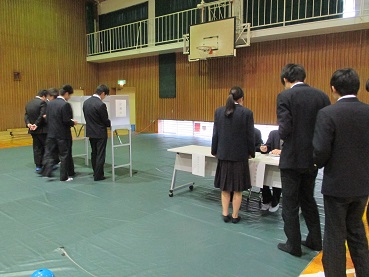ただきました。来週12月13日(火)には模擬選挙を体験します。