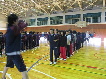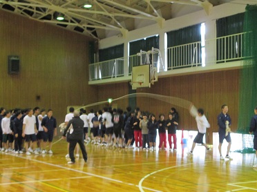 本日、校内実力テスト後に1年生を対象にクラス対抗大縄跳び