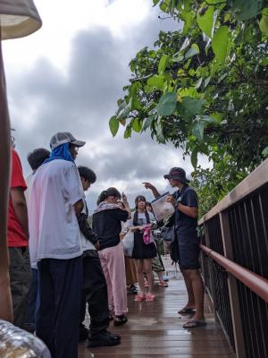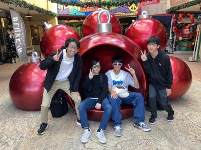 ウミカジテラスでの生徒の様子です。沖縄の海ときれいな夕日に感動しました。