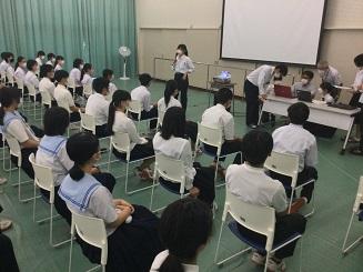 生徒は和やかな雰囲気の中で、これまでの探究経過を「スライド」にまとめて発表してました!!