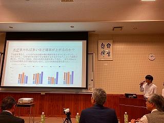 研修は本校新任教員を含め、多数の教員が研修会に参加し、熱心にメモを取りながら、探究成果のまとめ方等の講義を受けました。
