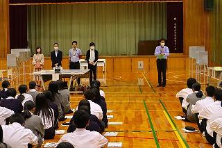 また、外部からNPO法人「みんなの進路委員会」代表の谷村さん、珠洲市で支援団体やホテル経営をされている畠山さんをお招きして、ふだんの授業と違った視点から、海外留学の良さを教えていただきました。