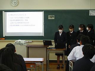 生徒は5分間の発表時間の中で、これまでの探究経過を「スライド」にまとめ、堂々と発表してました!!