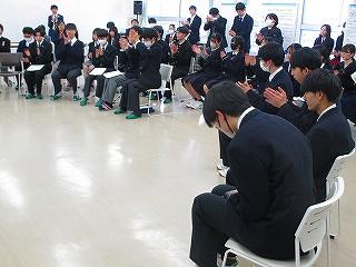 こころから挨拶をすることで、自分のこころが相手にそのまま伝わり、相手も理解してくれるのだと思います。挨拶から物事が始まることを理解し、こころのこもった挨拶を自分からすることが、まわりの環境を活性化し、明るい相互関係を築くことになります。本校では朝の生徒玄関での挨拶や授業の始めと終わりの挨拶を「誠実で相手に伝わる」ようにしています。
