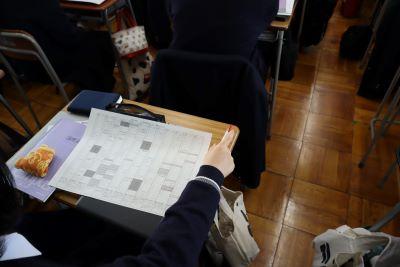「現代文」では、「ロイロノート」を使用して、先生から送られてきた原稿用紙カードにChromebookや自分のスマホで原稿用紙のマスに合わせてテキスト入力をして提出します。仲間の回答や意見を全員で共有することができます。