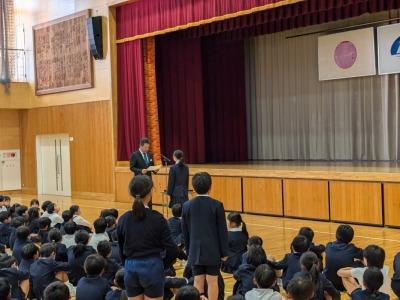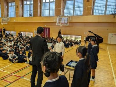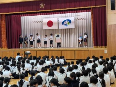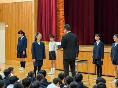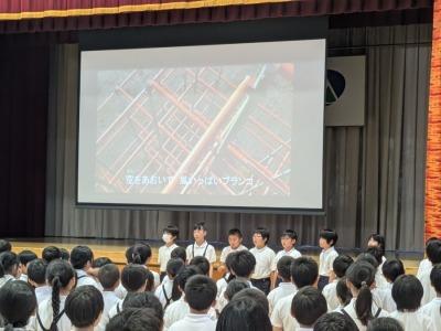 11月5日に全校朝会を行いました。校長先生のお話や11~12月の学習目標や生活目標のお話がありました。最後はみんなで今月の歌を歌いました。