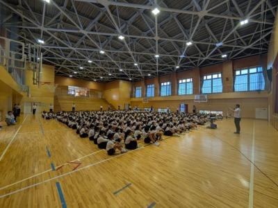 6月19日に避難訓練(不審者対応)を行いました。白山警察の方々に来校していただき、不審者への対応の仕方や避難の仕方を学びました。