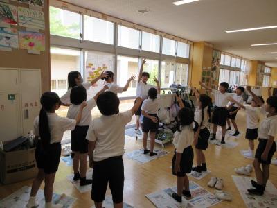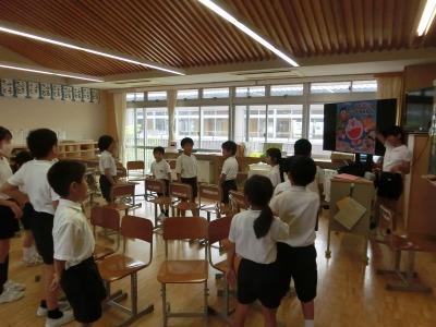 7月8日にたてわり遊びを行いました。6年生が企画した、「新聞ゲーム」や「いすとりゲーム」、「だるまさんが転んだ」などのゲームで楽しみました。