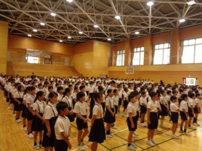 9月1日に2学期の始業式を行いました。校長先生のお話や学習目標「しっかり話を聞こう」、生活目標「時間を守ろう」についてのお話がありました。
