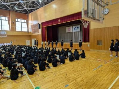 7月17日に1学期の終業式を行いました。校長先生のお話や生徒指導から夏休みの生活についてのお話がありました。最後は、全校で校歌を歌いました。