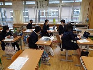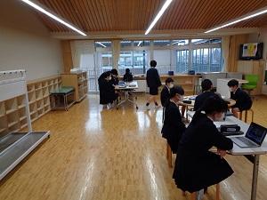 2月4日(金) 他の学年との交流ができないため、5・6年生の委員会活動をオンラインで行いました。Teamsに委員会ごとのチームを作り、メンバーと先生がWeb上で集まり会議をしました。複数のタブレットのマイクがオンになったことで、ハウリングを起こす等のトラブルがあったものの、コロナ禍の中でも活動を継続することができました。タブレットの新しい活用方法がまた一つ見つかりました。