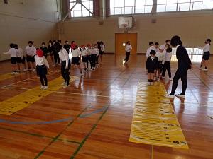 明光小学校では、広い校舎を利用したラダートレーニングや縄跳び運動を通して、日常的に体力を向上させる取り組みを実施しております。そして、毎月29日(ニクの日)には、体力がどれくらい向上しているのか確かめるために、体育委員会による記録測定会が行われています。自分自身の記録を確かめ、それよりも少しでも向上することを目指し、自分から進んで運動するように勧めています。ご家庭でも応援してあげてください。