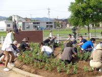 6月18日(日)にPTAの親子愛校作業を行いました。朝早くから、お子さんと保護者の方、教職員が学校に集まり、正面玄関前の花壇の花植えと校舎の窓ふきを行いました。校舎はピカピカになり、登校した子供たちも、うれしそうでした。花壇の花は、これから委員会の皆さんも水をあげて、お世話をしてくれます。学校が花いっぱい、子供たちも笑顔いっぱいになるといいですね。本当にありがとうございました。