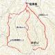 当初の予定では、小松市側(西ノ谷コース)から山頂を経由して加賀市側(塔尾コース)へ下り、もう一度加賀市側(とのお新道コース)から登り小松市側(行者岩コース)へ下山するルートを想定していました。しかし、最初の西ノ谷コースを登っていくと標高約400m付近から登山道を雪が覆うようになり、山頂まであと10分程度ではありましたが、引き返さざるをえなくなってしまいました(高校生の冬山登山は原則禁止されているため)。そのため予定を変更し、駐車場を拠点に、行者岩コース・とのお鉄塔線コースをそれぞれ標高400m程度まで登り引き返すこととしました(下記地図参照(ベースは国土地理院作成の地図))。