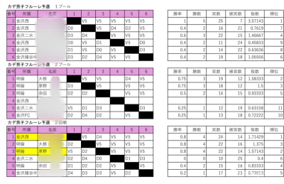 ◯結果詳細(上位3割Aトーナメント、中位3割Bトーナメント、下位3割Cトーナメント)