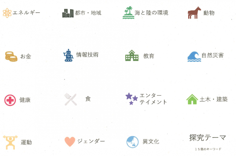 今年度は昨年度のSDGsをテーマにしたものと異なり、以下の明倫15のテーマから探究活動を行いました。