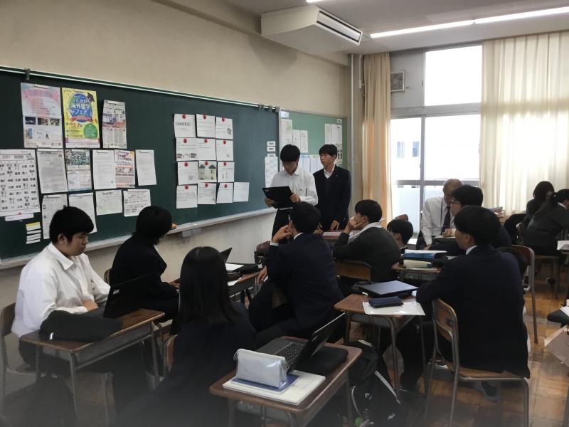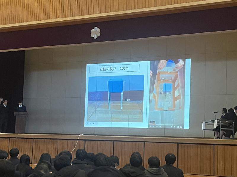 今年度から中間発表会→ブラッシュアップ→最終発表会という形をとり、校内の代表に選ばれた4班の発表がありました。