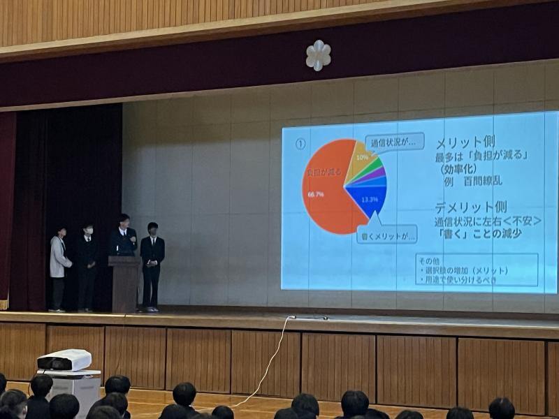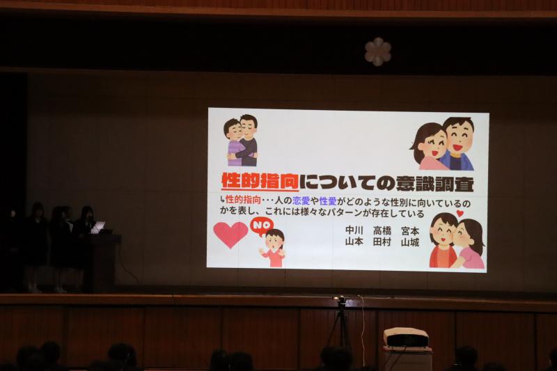 の3班が探究成果を発表しました。鋭い切り口の質問が飛び交うなか、どの班もしっかりと応答していました。